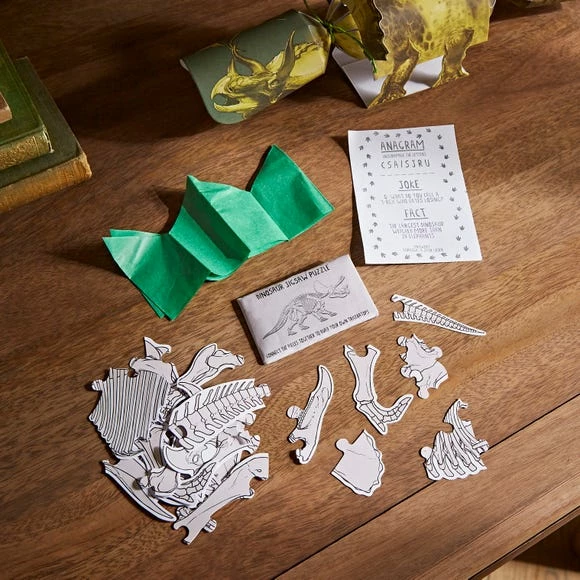 A festive Christmas table isn’t complete without crackers, so add a fun touch this Christmas with this set of Dinosaur Crackers! Sure to make the children (and children at heart) around the table happy, these crackers feature Tyrannosaurus and Triceratops designs and contain a paper crown, dinosaur jigsaw puzzle, and more dinosaur themed fun.