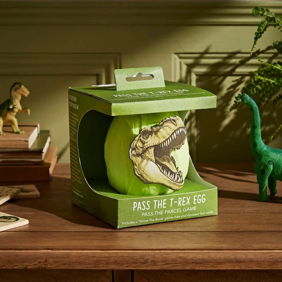 Introduce a twist on the favourite family friendly game this Christmas with this Dinosaur pass the parcel game. This easy to play game comes in a fun T-rex egg design and includes lots of fun prizes. As the music plays, the egg is passed around guests and when the music is stopped one layer of tissue is unwrapped. What will it reveal? Find out when you play! This game will certainly give a lot of laughs this Christmas.