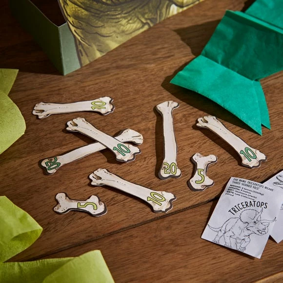 - Includes a ‘Throw The Bone’ game, hats, and fact cards