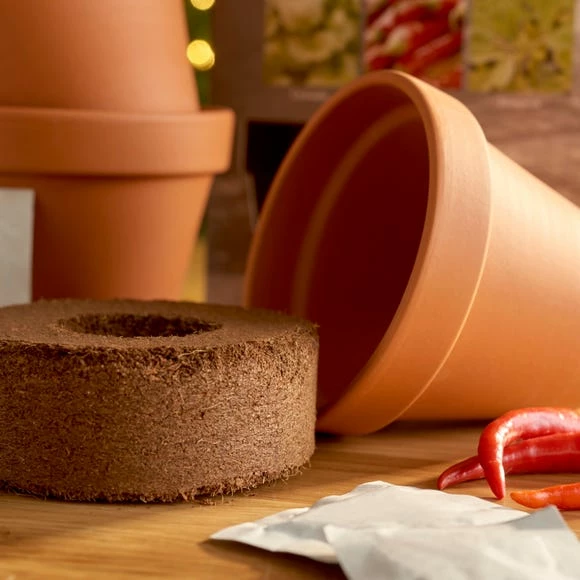 | Pack Contents | 3 x Terracotta Pots, 3 x Compost Pellets, Growing Instructions, Chilli Habanero, Rosemary & Coriander Santo |