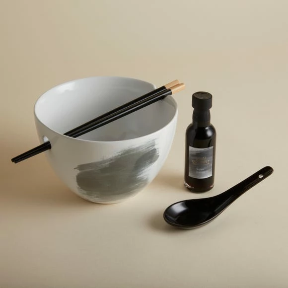 This noodle bowl gift set is an ideal gift for foodies and lovers of Pan Asian cuisine. This set comes with a ceramic noodle bowl, spoon, bamboo chopsticks, and soya sauce. The soya sauce is ideal for adding depth of flavour to your favourite savoury dishes.