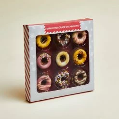 This set of 9 decorated hollow chocolate donuts is made with delicious milk chocolate and makes a fun gift for all the family to share this festive season. Presented in handy gift packaging, this box is ready to be wrapped and gifted.