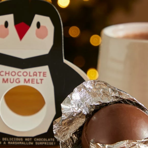 This Hot Choc Mug Melt comes with a festive hot chocolate drink mix and mini marshmallows. This delicious hot chocolate mix creates an indulgent drink of hot cocoa – perfect for warming up in the colder season.