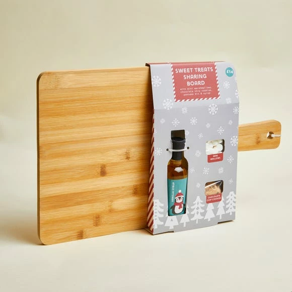 The sweet treats sharing board is the perfect addition to your kitchen this festive season. This set includes a pancake mix, Poland chocolate cookie, vanilla syrup and mini marshmallow.