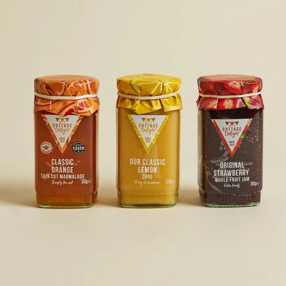 | Pack Contents | 340g Original Strawberry Whole Fruit Jam, 350g Classic Orange Thin Cut Marmalade, 310g Our Classic Lemon Curd |
