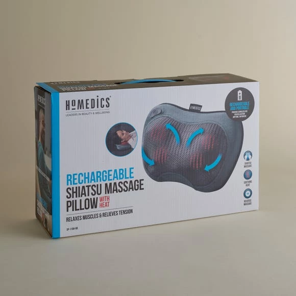 Relax and unwind after a long day by treating yourself to a spa treatment right in your own home. This HoMedics Rechargeable Shiatsu Massage Pillow with Heat is designed to soothe tired muscles with a deep kneading shiatsu massage and comfortable heat.