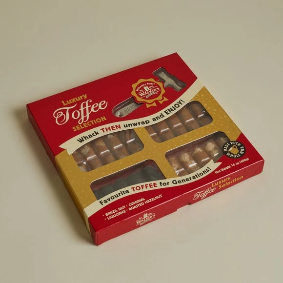 Made using the finest ingredients by a family company with over 125 years cooking experience, this Luxury Toffee Selection includes brazil nut, original, liquorice, and roasted hazelnut flavours and comes with a unique toffee hammer making for both a tasty and fun experience.