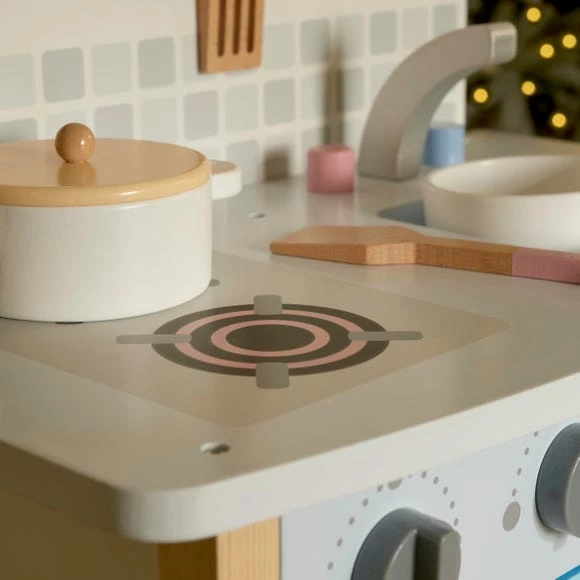Both stylish and fun, this wooden kitchen is the perfect play area for your little ones, year in, year out. Made from high quality solid wood and MDF, the kitchen is painted with non-toxic paint and print alongside being a great height for kids. The modern colourway and fun design makes this play kitchen a perfect present.